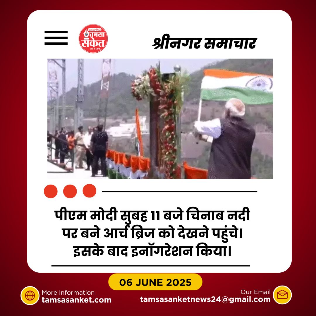 श्रीनगर। प्रधानमंत्री नरेंद्र मोदी गुरुवार को पहलगाम आतंकी हमले के बाद पहली बार जम्मू-कश्मीर पहुंचे। उन्होंने रियासी जिले में चिनाब नदी पर बने दुनिया के सबसे ऊंचे रेलवे आर्च ब्रिज का तिरंगा दिखाकर उद्घाटन किया। इसके साथ ही अंजी ब्रिज और कटरा से कश्मीर की पहली वंदे भारत ट्रेन को भी रवाना किया।