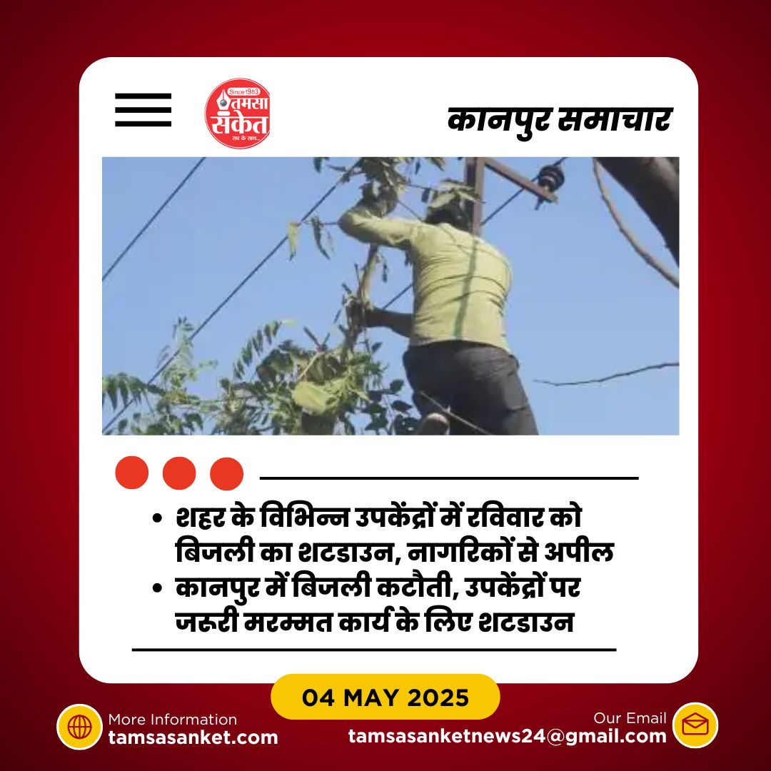 - बिजली मरम्मत कार्य के चलते कानपुर के विभिन्न क्षेत्रों में शटडाउन