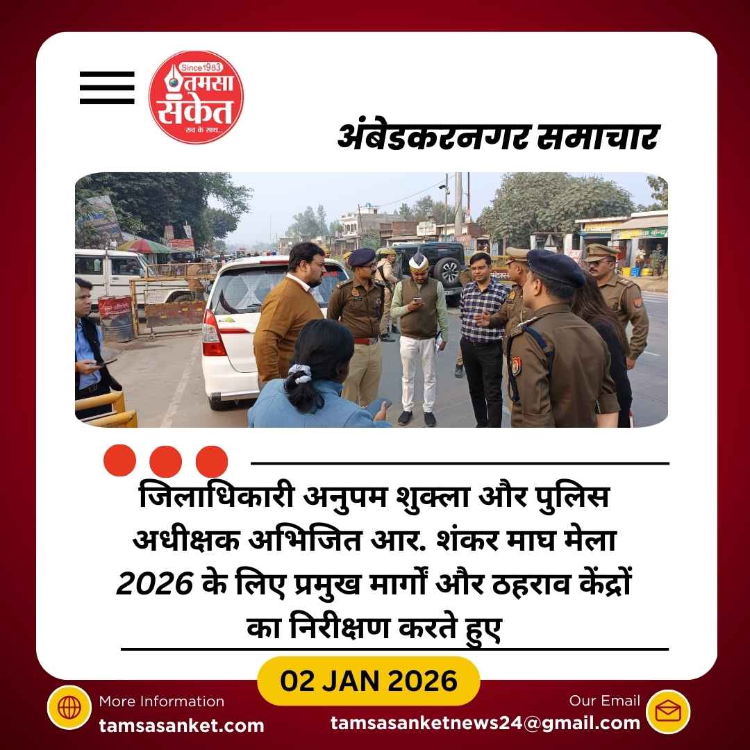 अंबेडकरनगर। प्रयागराज माघ मेला 2026 को दृष्टिगत रखते हुए जनपद प्रशासन ने तैयारियों को तेज कर दिया है। इसी क्रम में गुरुवार को जिलाधिकारी अनुपम शुक्ला और पुलिस अधीक्षक अभिजित आर. शंकर ने जनपद के उन प्रमुख मार्गों और स्थलों का भौतिक निरीक्षण किया, जहां से होकर बड़ी संख्या में श्रद्धालु प्रयागराज माघ मेला के लिए आवागमन करते हैं। निरीक्षण का उद्देश्य श्रद्धालुओं की सुविधा, सुरक्षा और ठहराव से जुड़ी व्यवस्थाओं को सुदृढ़ करना रहा।