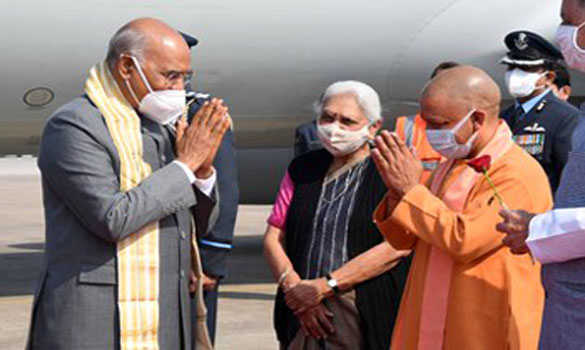 कानपुर। राष्ट्रपति रामनाथ कोविंद कपड़ा उद्योग के लिए प्रसिद्ध उत्तर प्रदेश में कानपुर के दो दिवसीय दौरे पर बुधवार को पहंचे। राष्ट्रपति की सिविल एयरोड्रम पर अगवानी राज्यपाल आनंदी बेन पटेल और सूबे के मुखिया योगी आदित्यनाथ ने की । राष्ट्रपति, यहां से मेहरवान सिंह पुरवा गांव के लिए निकल गये । वह यहां सपा नेता हरमोहन सिंह यादव के जन्म शताब्दी समारोह में शिरकत करने पहुंचे हैं।