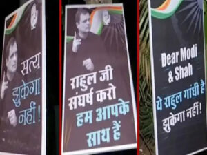 नेशनल हेराल्ड केस में ED की राहुल गांधी से पूछताछ जारी है। मीडिया रिपोर्ट्स के मुताबिक, ED के अफसर उनसे 50 से ज्यादा सवाल कर रहे हैं। लेकिन इससे पहले कांग्रेस ने इस कार्रवाई का जमकर विरोध किया। सुबह से पार्टी के कार्यकर्ताओं ने दिल्ली मे जगह-जगह राहुल के पोस्टर लगा दिए थे। जिस पर लिखा था- राहुल झुकेगा नहीं। देश के अन्य हिस्सों में पार्टी कार्यकर्ताओं ने धरना देकर प्रदर्शन किया।