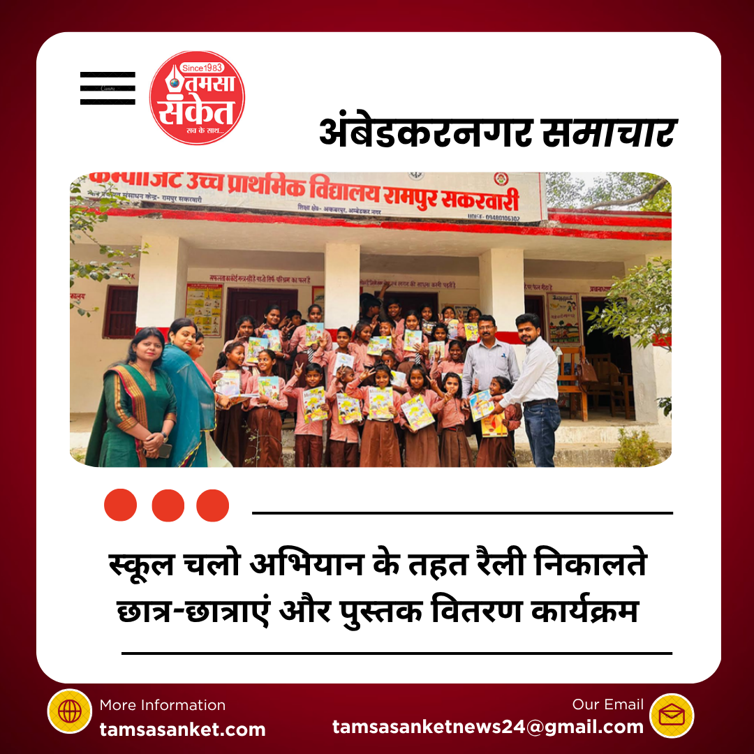 अम्बेडकरनगर। राज्य परियोजना कार्यालय के निर्देश पर चल रहे स्कूल चलो अभियान के तहत बुधवार को अकबरपुर शिक्षा क्षेत्र के कम्पोजिट उच्च प्राथमिक विद्यालय रामपुर सकरवारी में रैली और निःशुल्क पाठ्य पुस्तक वितरण कार्यक्रम आयोजित किया गया। कार्यक्रम का संचालन प्रधानाध्यापक देवेन्द्र प्रताप सिंह की देखरेख में हुआ।