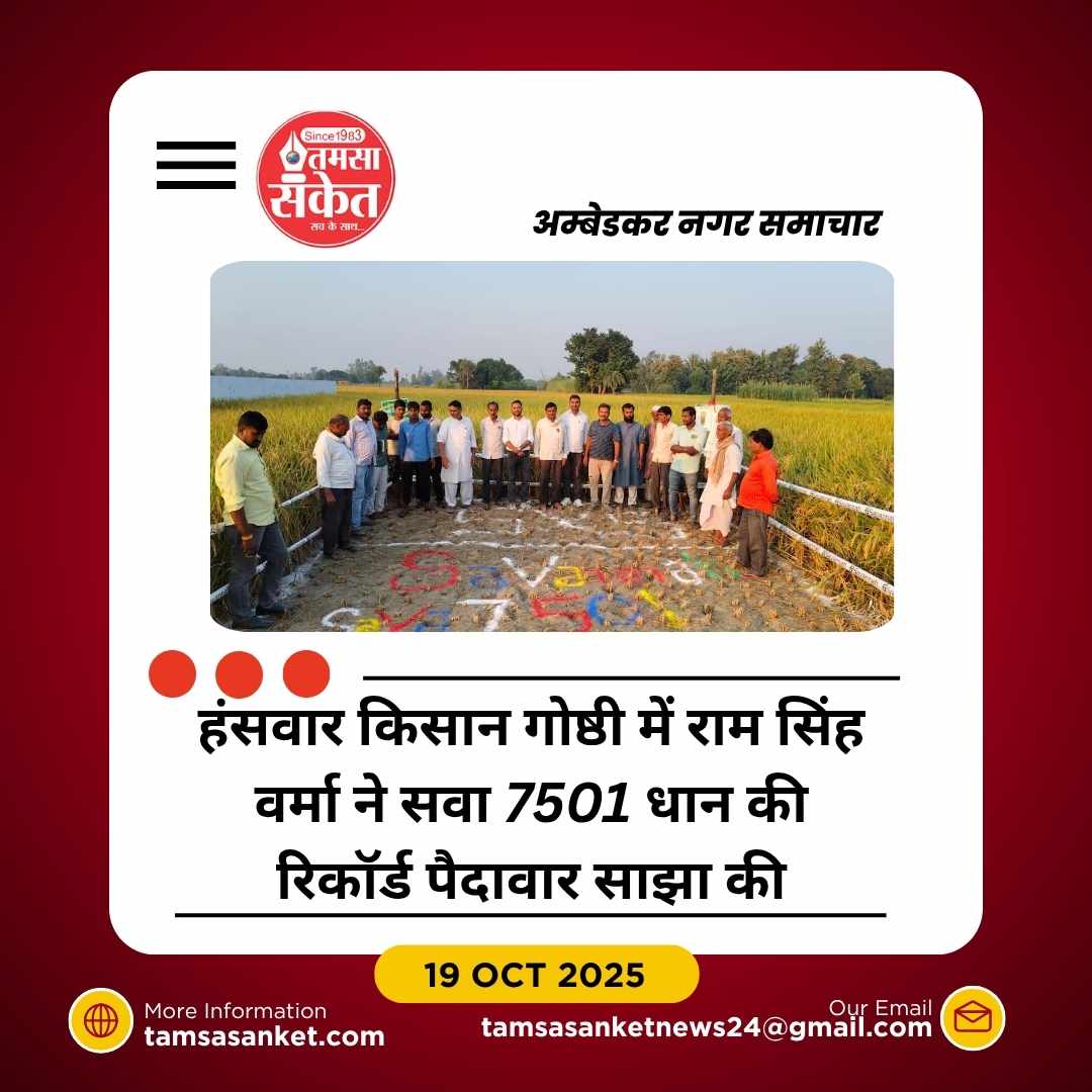 संवाददाता। जिले के टांडा ब्लॉक के अंतर्गत हंसवार में शनिवार को आयोजित एक किसान गोष्ठी में उस समय उत्साह का माहौल देखा गया, जब स्थानीय प्रगतिशील किसान राम सिंह वर्मा ने अपने खेत में सवा 7501 किस्म के धान से एक एकड़ में रिकॉर्ड 37 क्विंटल उत्पादन हासिल करने की जानकारी साझा की। यह आयोजन सवाना सीड्स द्वारा किया गया था, जिसमें बड़ी संख्या में क्षेत्र के सम्मानित किसान और बीज वितरक मौजूद रहे।