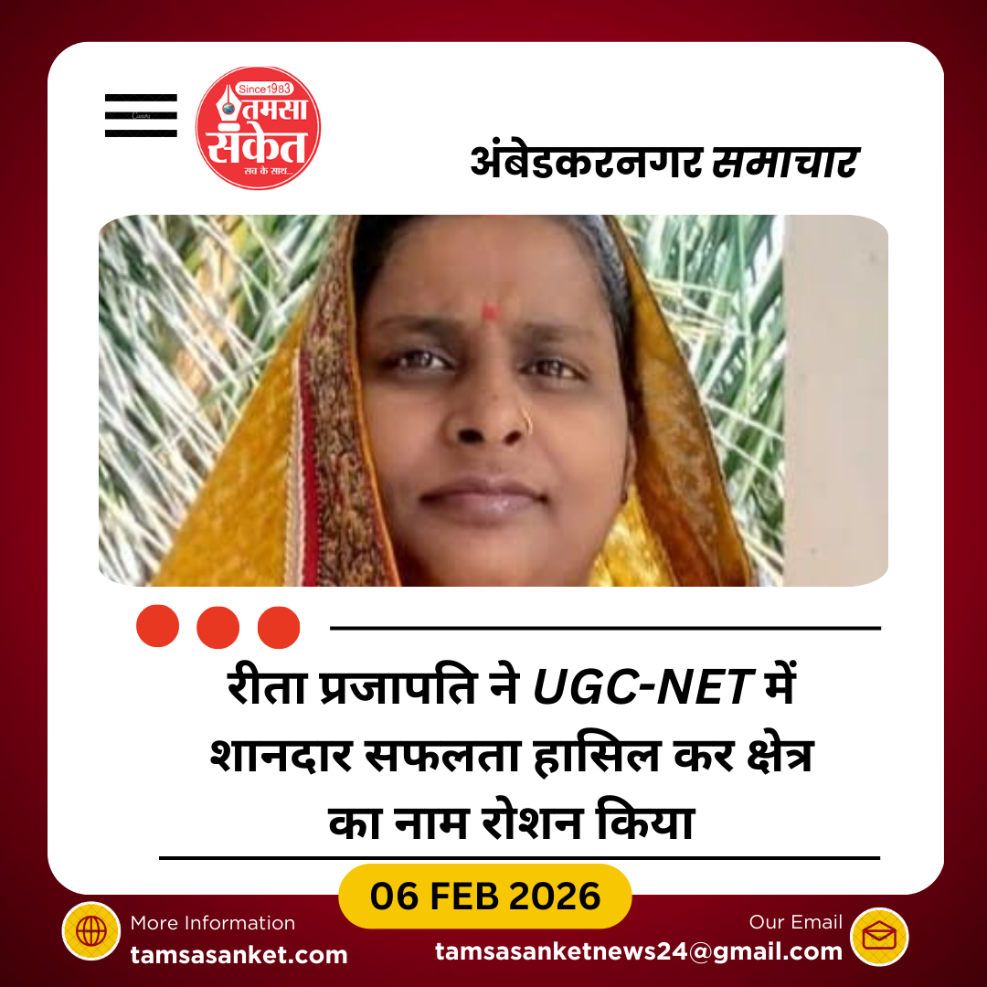 अंबेडकर नगर। राष्ट्रीय परीक्षण एजेंसी (NTA) द्वारा आयोजित यूजीसी-नेट दिसंबर 2025 परीक्षा में जनपद अंबेडकर नगर की रीता प्रजापति ने उल्लेखनीय सफलता हासिल की है। उन्होंने गृह विज्ञान (होम साइंस) विषय में 90.90 परसेंटाइल अंक प्राप्त कर असिस्टेंट प्रोफेसर और पीएचडी में प्रवेश के लिए पात्रता अर्जित की है। उनकी इस उपलब्धि से क्षेत्र में खुशी और गर्व का माहौल है।
