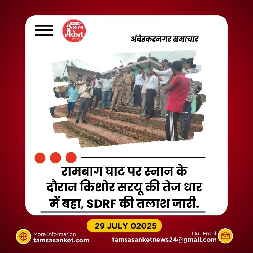 अंबेडकरनगर। नाग पंचमी की पावन सुबह उस वक्त मातम में बदल गई जब एक किशोर श्रद्धा से भरे स्नान के दौरान सरयू की तेज धारा में बह गया। यह हादसा जहांगीरगंज थाना क्षेत्र के रामबाग घाट पर मंगलवार सुबह उस समय हुआ जब किशोर नितिन जायसवाल अपने बड़े भाई रोशन के साथ स्नान करने गया था।