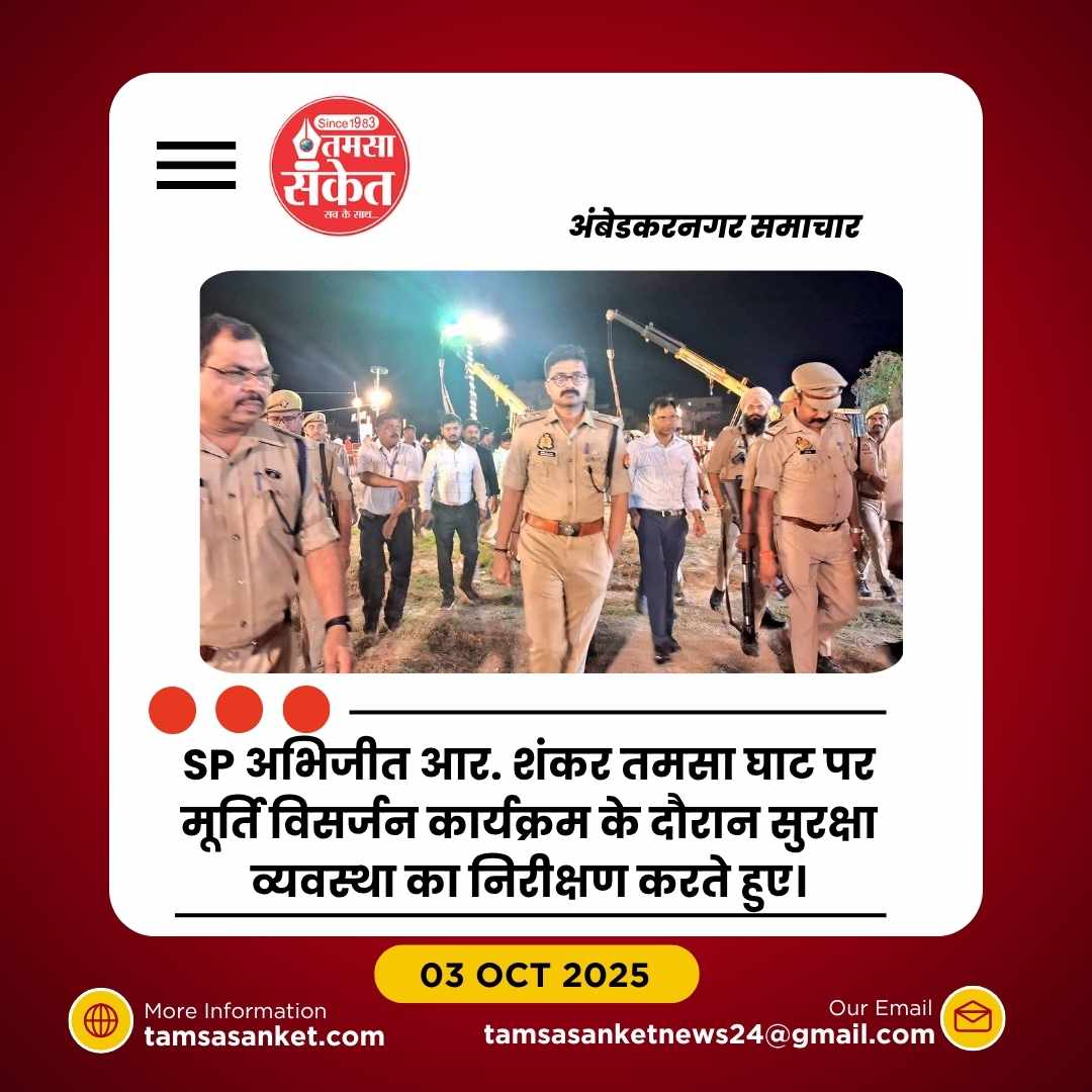 विजयादशमी के मौके पर जिलेभर से श्रद्धालु देवी प्रतिमाओं के विसर्जन हेतु तमसा घाट पहुंचे। इस दौरान श्रद्धालुओं की भारी भीड़ को देखते हुए सुरक्षा व्यवस्था चाक-चौबंद रखी गई थी। कोतवाली अकबरपुर क्षेत्र में नदी घाटों पर पुलिस की गश्त, बैरिकेडिंग और जल पुलिस की तैनाती सुनिश्चित की गई थी।