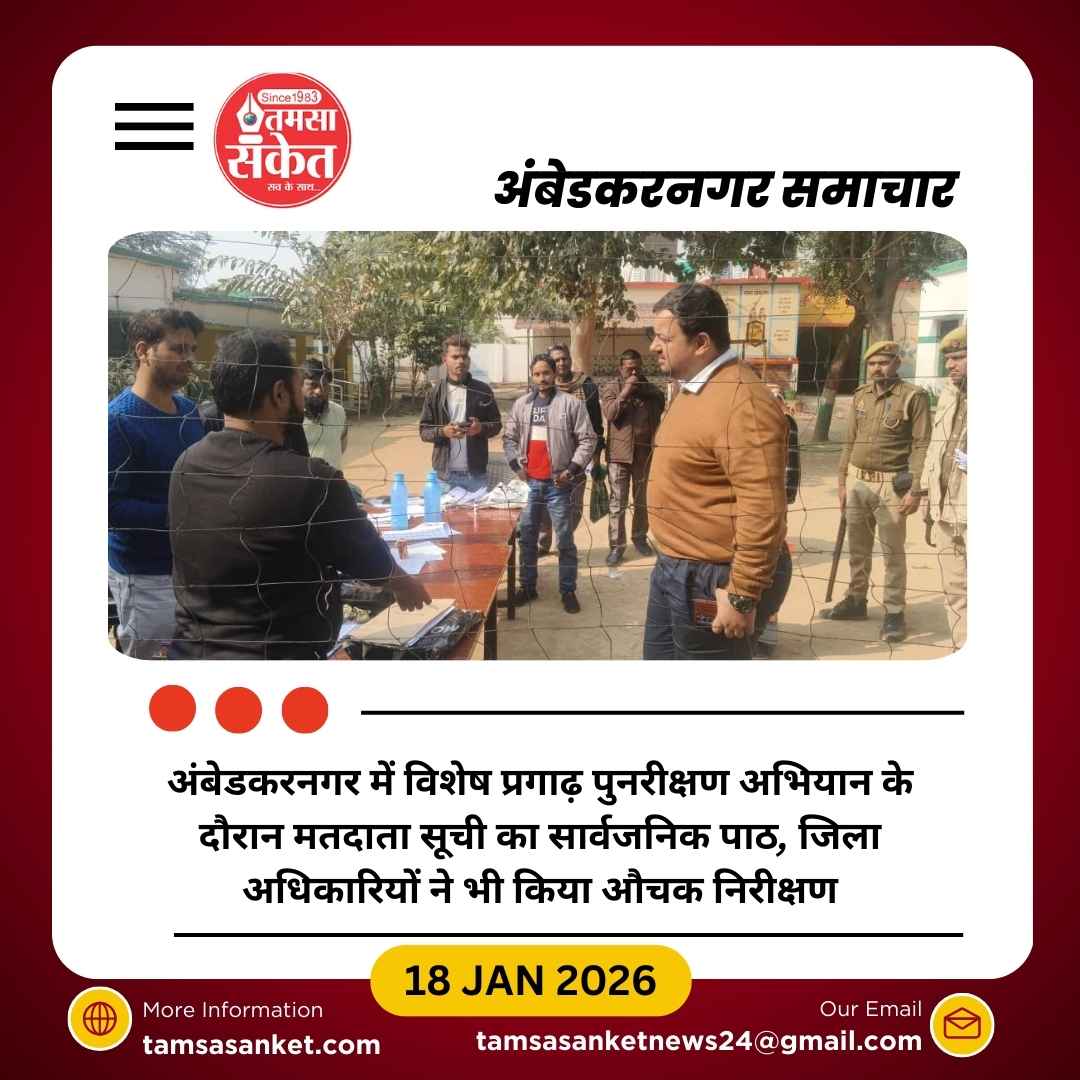 अंबेडकरनगर। मुख्य निर्वाचन अधिकारी, उत्तर प्रदेश, लखनऊ के निर्देशानुसार जनपद के समस्त विधानसभा क्षेत्रों में विशेष प्रगाढ़ पुनरीक्षण अभियान का आयोजन किया गया। यह अभियान अहंता तिथि 01.01.2026 के आधार पर 18 जनवरी, 2026 को सुबह 10:30 बजे से शाम 4:30 बजे तक संपन्न हुआ। अभियान के दौरान बूथ स्तर अधिकारी (बीएलओ) और संबंधित निर्वाचन अधिकारी पूरी तत्परता के साथ उपस्थित रहे।