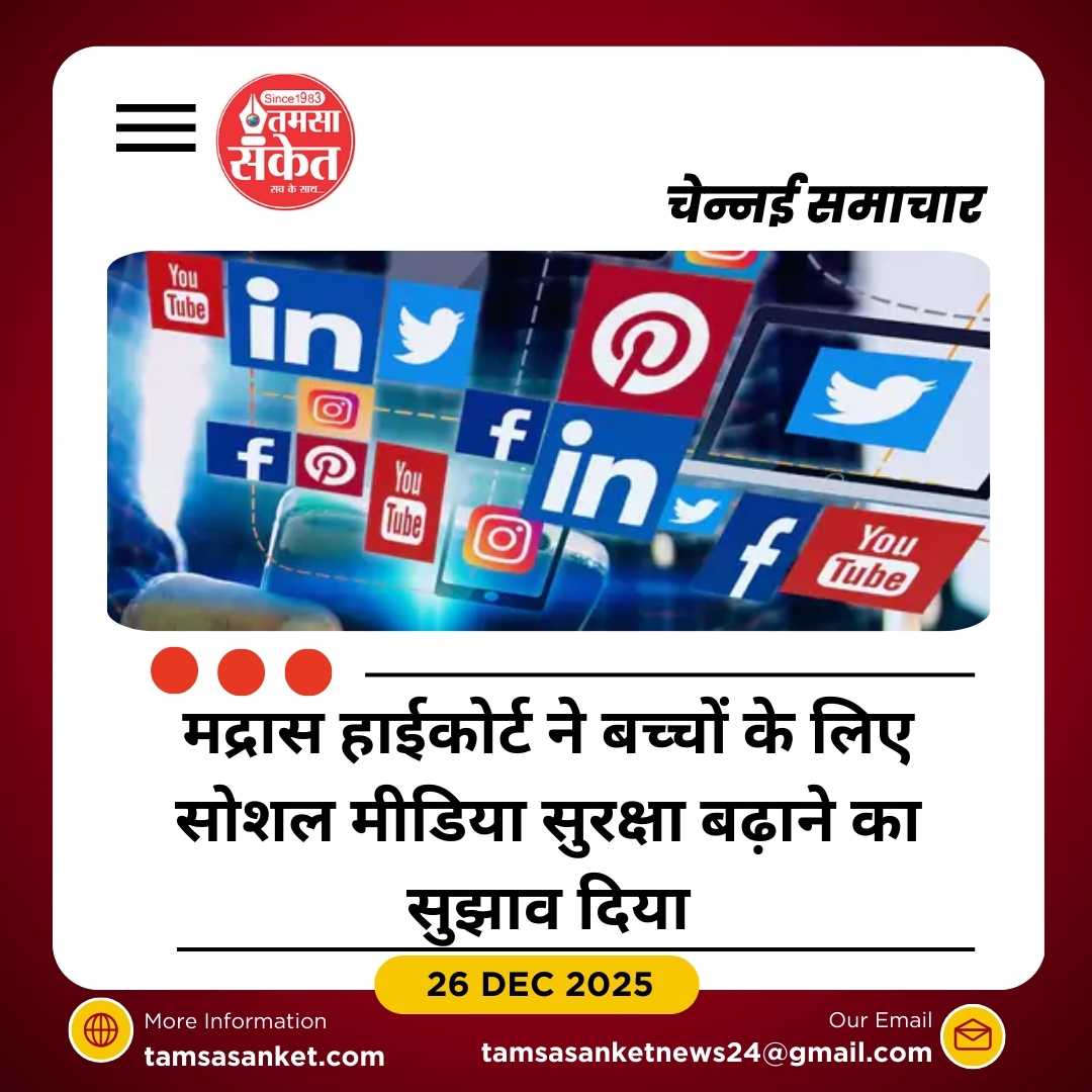 चेन्नई। मद्रास हाईकोर्ट ने शुक्रवार को केंद्र सरकार को सुझाव दिया कि भारत में भी ऑस्ट्रेलिया की तरह 16 साल से कम उम्र के बच्चों के लिए सोशल मीडिया प्लेटफॉर्म्स पर प्रतिबंध लगाया जाए। कोर्ट ने कहा कि इस मुद्दे पर गंभीरता से विचार किया जाना चाहिए।