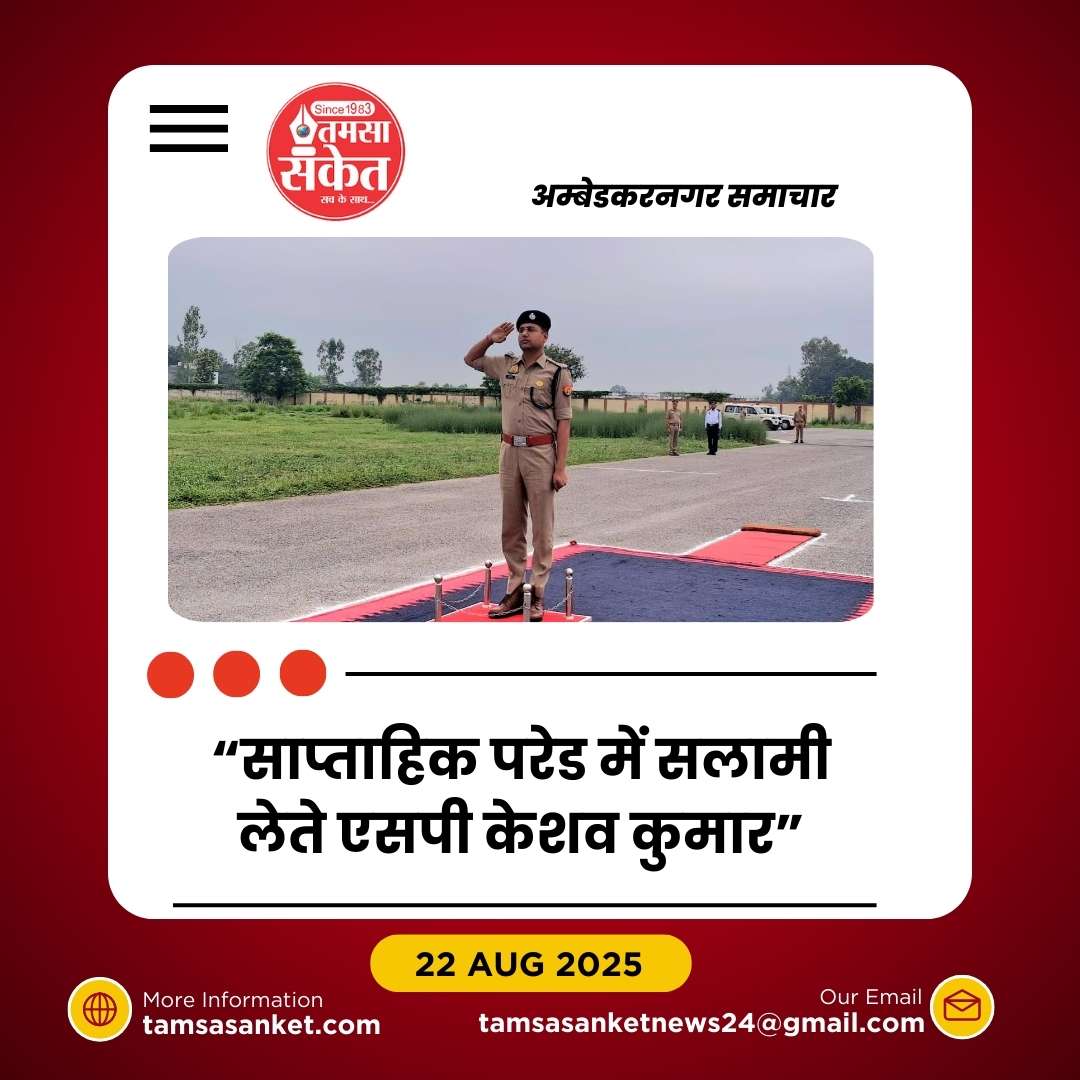 अम्बेडकरनगर । अम्बेडकरनगर (शुक्रवार को साप्ताहिक परेड के दौरान पुलिस अधीक्षक केशव कुमार ने रिजर्व पुलिस लाइन स्थित परेड ग्राउंड पर परेड की सलामी ली। इसके पश्चात उन्होंने पुलिस बल को दौड़ कराई और टोलीवार परेड ड्रिल का निरीक्षण कर जवानों को आवश्यक मार्गदर्शन प्रदान किया।