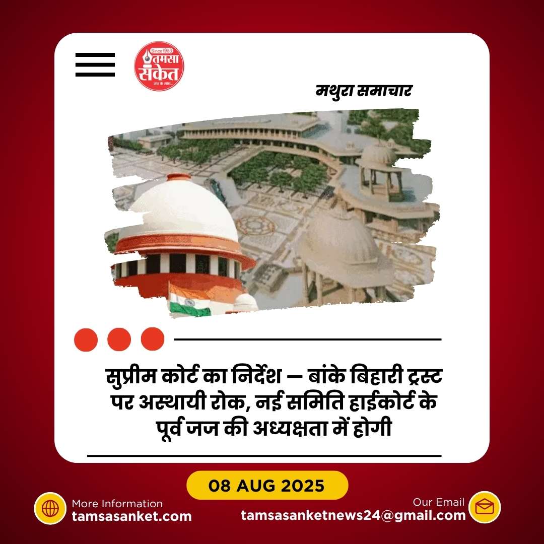 - सुप्रीम कोर्ट ने बांके बिहारी मंदिर ट्रस्ट पर फिलहाल अस्थायी रोक लगाई