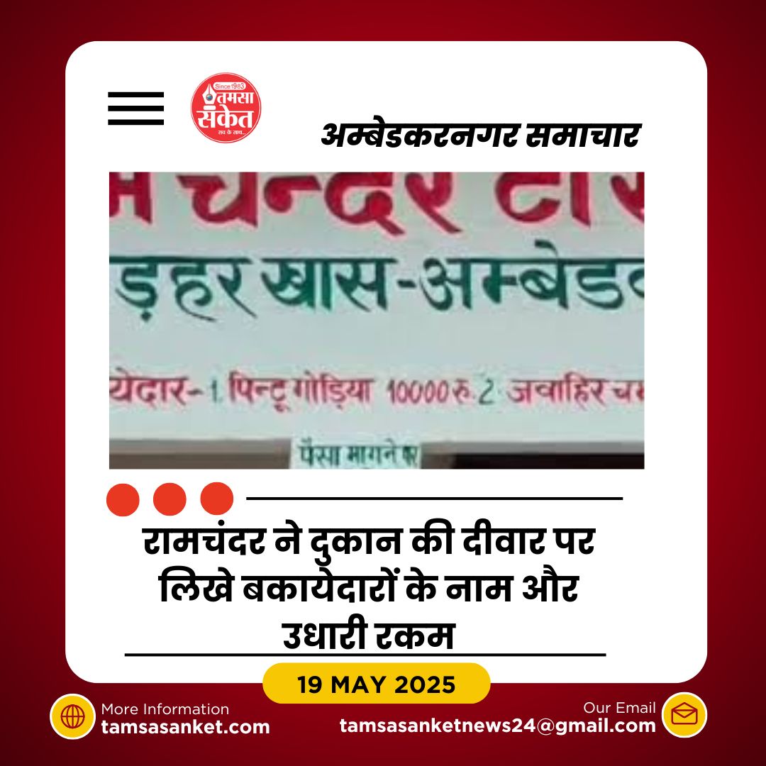 अम्बेडकरनगर। अम्बेडकरनगर.जिले के आलापुर तहसील अंतर्गत बिड़हर खास गांव में एक चाय दुकानदार ने अपने उधार की वसूली के लिए अनोखा तरीका अपनाया है। वर्षों से अपने टी स्टाल पर लोगों को चाय पिलाने वाले रामचंदर ने जब बार-बार मांगने पर भी बकाया नहीं मिलने और उल्टे धमकी मिलने की बात बताई, तो उसने अपने कर्जदारों के नाम और बकाया रकम अपनी दुकान की दीवार पर लिखवा दी।
