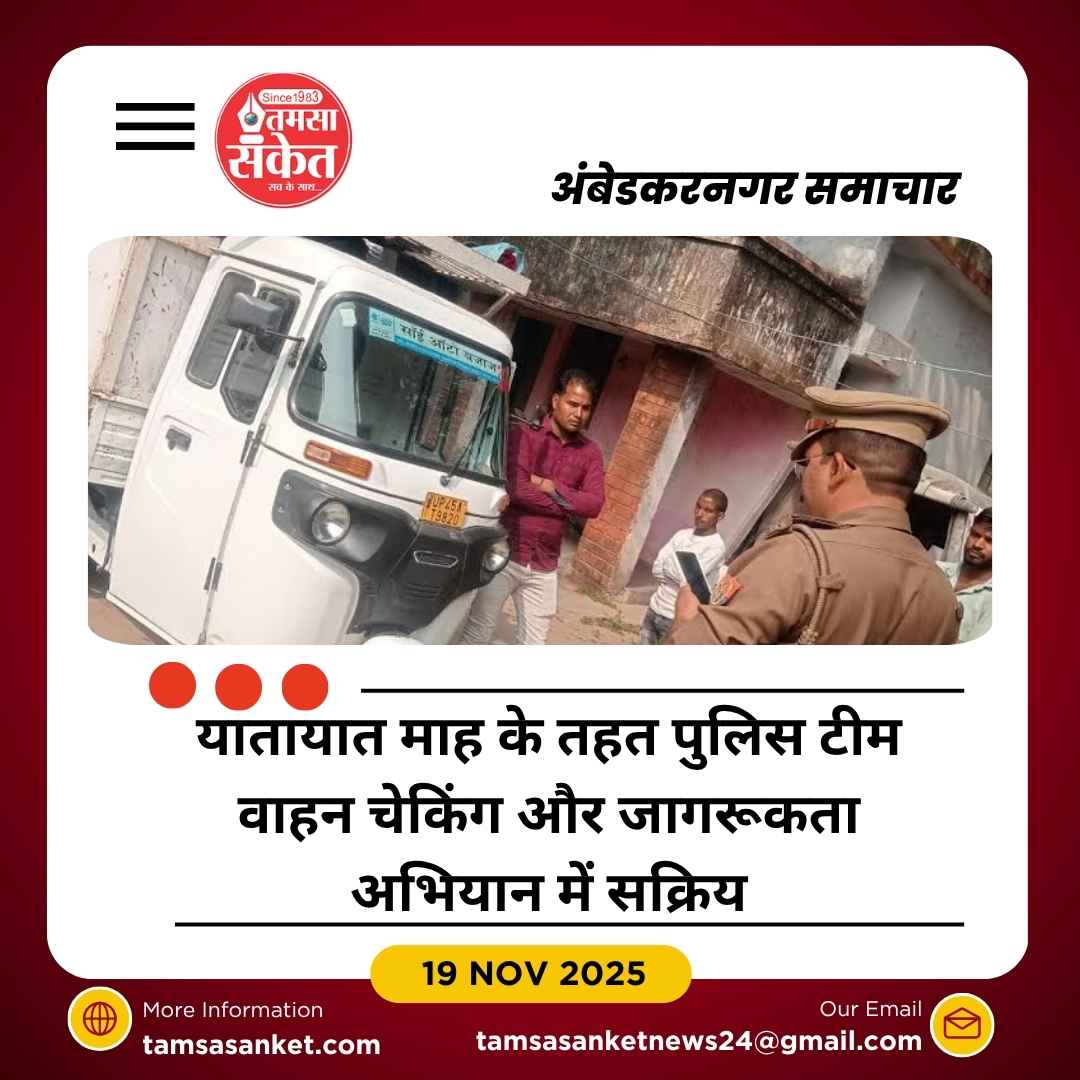 अम्बेडकरनगर – यातायात माह नवम्बर 2025 के तहत बुधवार को पुलिस और यातायात टीम ने जनपद में व्यापक जागरूकता अभियान चलाया। अभियान के दौरान सड़क सुरक्षा से जुड़ी जानकारी दी गई, पम्पलेट वितरित किए गए और बड़े पैमाने पर वाहन चेकिंग की गई।