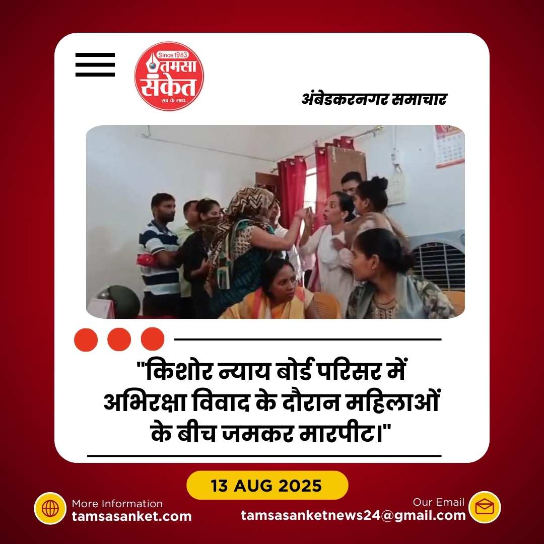 अंबेडकरनगर। किशोर न्याय बोर्ड परिसर में मंगलवार को नाबालिग लड़की की अभिरक्षा को लेकर दो परिवारों के बीच विवाद मारपीट में बदल गया। इस दौरान महिलाओं ने एक-दूसरे के बाल खींचे और थप्पड़ जड़े। घटना का वीडियो सोशल मीडिया पर वायरल हो गया है।