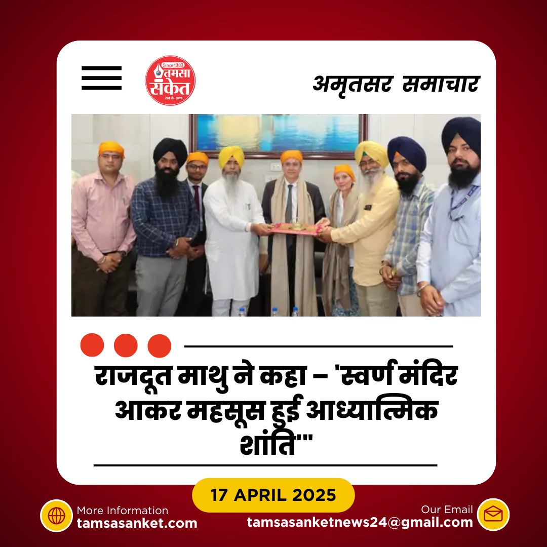 राजदूत माथु ने कहा, “इस पवित्र धार्मिक स्थल पर आकर मैं गौरवान्वित महसूस कर रहा हूं। SGPC द्वारा दिए गए सम्मान के लिए मैं आभारी हूं।”