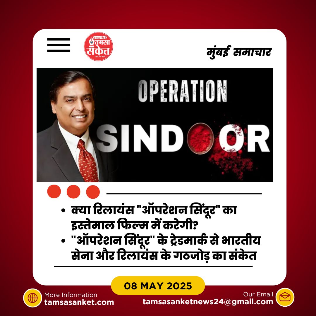 - रिलायंस का नया कदम, “ऑपरेशन सिंदूर” ट्रेडमार्क आवेदन