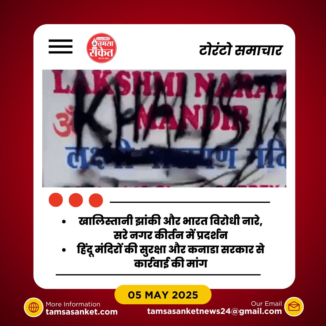 - कनाडा के टोरंटो में खालिस्तानी समर्थकों द्वारा हिंदू विरोधी रैली
