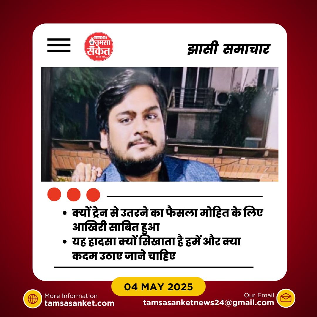 मोहित और उसके दोस्त प्रशांत कपड़े का कारोबार करते थे और काम के सिलसिले में ललितपुर गए थे। वे शनिवार रात ललितपुर से राजस्थान के ब्यावर जा रहे थे। झांसी स्टेशन पर ट्रेन बदलनी थी। जैसे ही ट्रेन झांसी पहुंची, मोहित ने चलती गाड़ी से उतरने की कोशिश की, लेकिन पीठ पर बैग होने के कारण संतुलन बनाने में नाकाम रहा। वह प्लेटफॉर्म और ट्रेन के बीच फंस गया और गंभीर रूप से घायल हो गया।