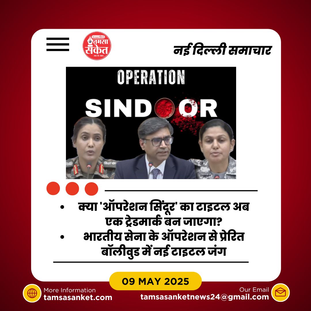 तिवारी ने बताया कि जब एक ही टाइटल के लिए कई लोग आवेदन करते हैं, तो पहले आवेदन करने वाले को प्राथमिकता दी जाती है। उन्होंने कहा, “ऑपरेशन सिंदूर का टाइटल एक ही व्यक्ति को मिलेगा। बाकी लोग इसमें बदलाव कर सकते हैं, जैसे ‘देश का सिंदूर’, ‘इंसाफ का सिंदूर’ या ‘ऑपरेशन सिंदूर: एक सच्ची कहानी’। लेकिन ‘ऑपरेशन सिंदूर’ शुद्ध रूप में किसी एक को ही मिलेगा।”