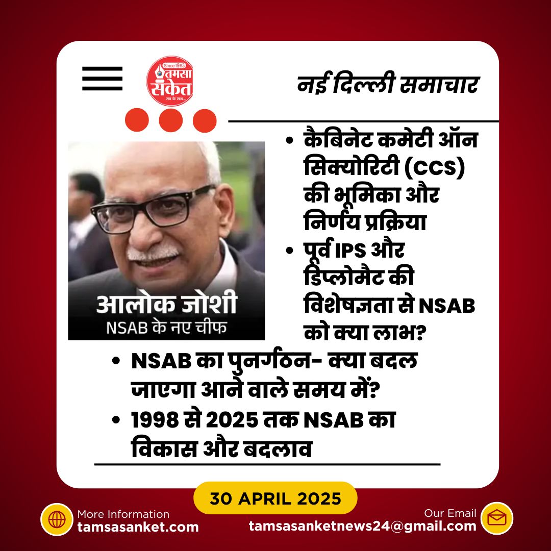नई दिल्ली। केंद्र सरकार ने राष्ट्रीय सुरक्षा सलाहकार बोर्ड (NSAB) का नए सिरे से गठन करते हुए रिसर्च एंड एनालिसिस विंग (R&AW) के पूर्व प्रमुख आलोक जोशी को इसका नया चेयरमैन नियुक्त किया है। यह फैसला हाल ही में जम्मू-कश्मीर के पहलगाम में हुए आतंकी हमले के मद्देनज़र लिया गया है।