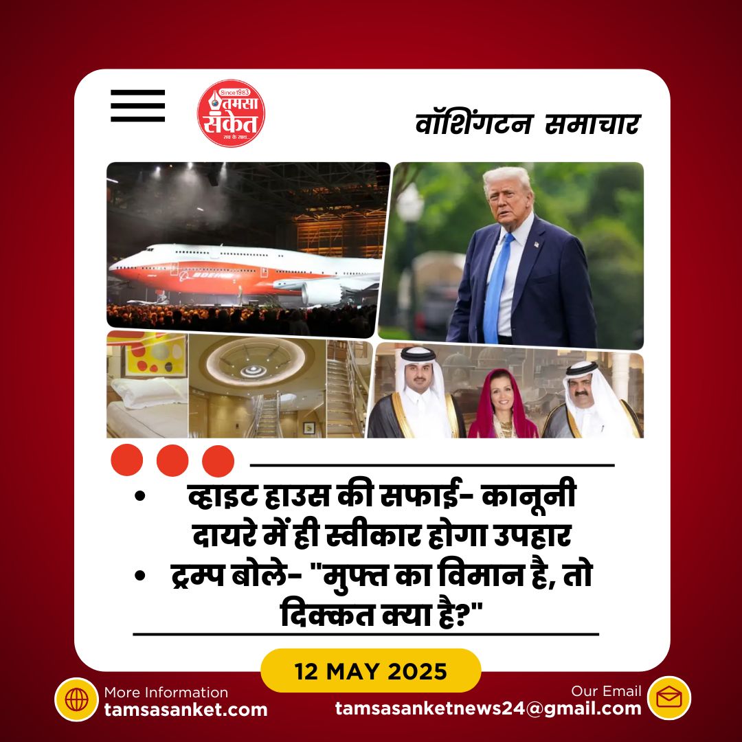 सूत्रों के अनुसार ट्रम्प मंगलवार को कतर दौरे पर जा रहे हैं और इसी दौरान इस उपहार की आधिकारिक घोषणा हो सकती है। हालांकि व्हाइट हाउस के मुताबिक, इस गिफ्ट की प्रक्रिया में समय लगेगा और ट्रम्प को यह विमान तत्काल नहीं मिलेगा। बताया जा रहा है कि 2029 से पहले ही वे इसका इस्तेमाल शुरू कर सकेंगे।